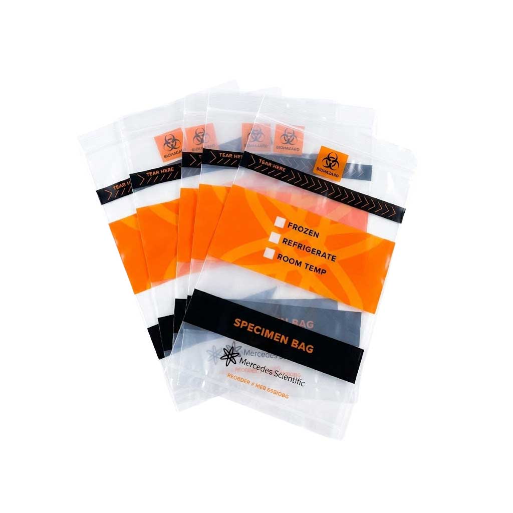 The Mercedes Scientific Biohazard Specimen Bags with Pouch clear specimen transport bag provides a secure, resealable solution for safely handling and transporting biological samples in laboratory and clinical settings.